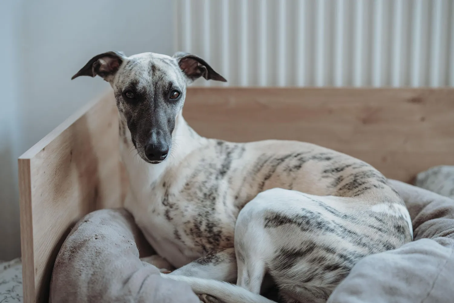 Mein erster Gedanke war „Wow, er guckt echt verdammt cool!“ In Wirklichkeit war es aber wohl eher die genervte Müdigkeit eines Whippets, der viiiiiel zu früh aus dem Bett geworfen wurde 🙈😂. Nun ja, das eine schließt das andere ja nicht aus – und hübsch ist er auf jeden Fall, egal in welchem Gemütszustand 🥰😊