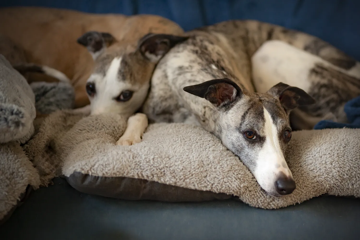 … diese wunderbar schlammgraue Jahreszeit, in der man den Spaß, den die Whippets beim Spaziergang hatten, am Grad ihrer Verschmutzung erkennen kann.