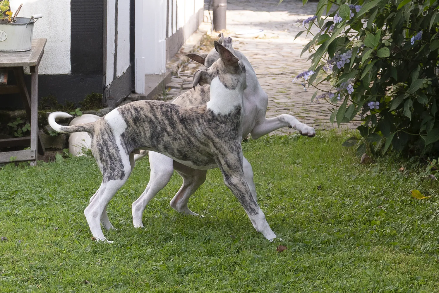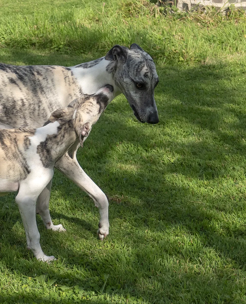 Keine Ahnung, wo das achte Bein des kleinen Doppelwhippetmonsters geblieben ist – Fotoperspektive macht’s möglich 🙂