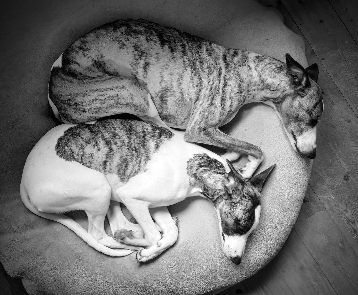 … diese wunderbar schlammgraue Jahreszeit, in der man den Spaß, den die Whippets beim Spaziergang hatten, am Grad ihrer Verschmutzung erkennen kann.